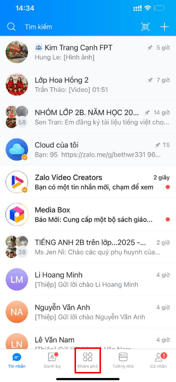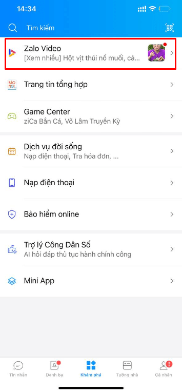 Bước 1: Vào ứng dụng Zalo – Chọn mục “Khám phá”.